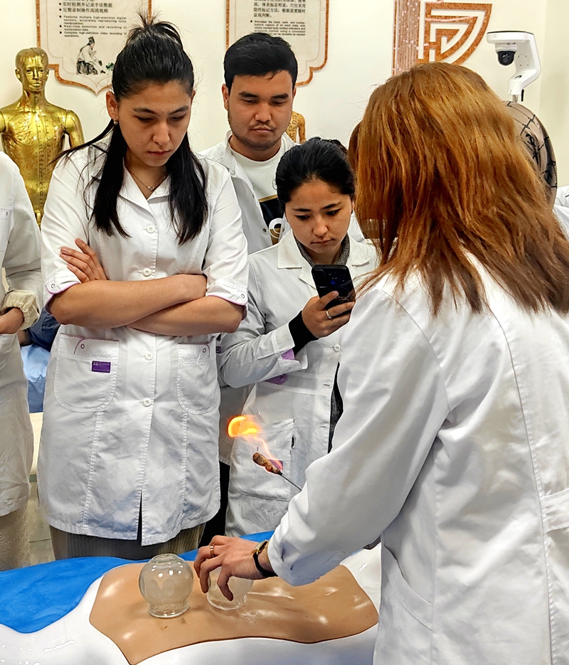今年,乌兹别克斯坦撒马尔罕国立医科大学遴选的第一批医学生来到新疆医科大学第四附属医院(第四临床医学院)开展中医临床实践培训。