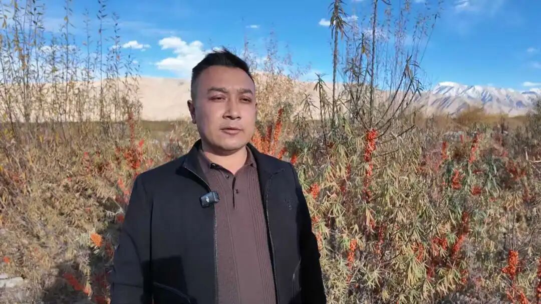班迪尔乡副乡长艾合麦提江·麦麦提图尔荪说:“班迪尔乡2017年开始种沙棘,沙棘产业已经变成主导产业。沙棘有生态效益和经济效益,2022年至今我们收购沙棘400吨,向农民发放收购款120万元,今年沙棘长势好,农民积极性高,沙棘带动农民致富,拓宽了致富门路。”