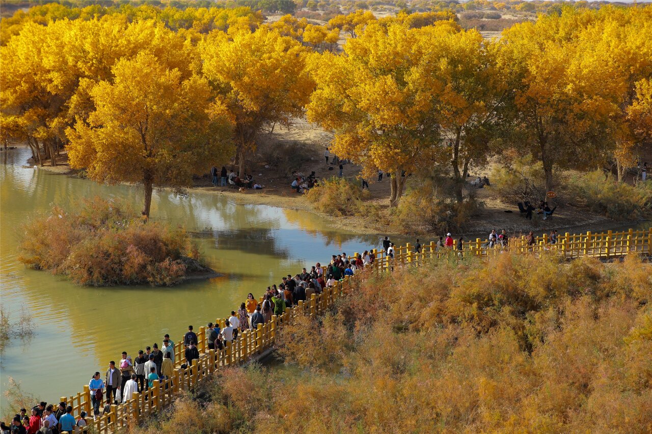 10月18日,新疆和田地区洛浦县第五届“醉美胡杨 魅力洛浦”胡杨季观赏活动在杭桂镇洛滨胡杨林正式启动。当日,来自各地的1万余名游客齐聚于此,在欣赏精彩文艺演出的同时,沉浸式感受胡杨林的秋日魅力。(通讯员:买买提艾力·艾尼瓦尔)