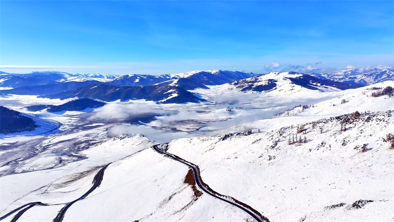 在新疆的广袤大地上,阿禾公路如一条灵动的丝线,穿梭于雪山、草原、林海之间。深秋时节,当雪覆草原,云雾添景,它便化作了一幅流动的山河长卷,四季更迭中,每一眼都是令人心醉的秘境之美。
