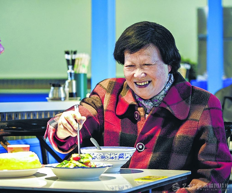 10月22日,当日正式营业的乌鲁木齐市天山区建国路220号院“爸妈食堂”里,辖区居民在就餐。努尔艾力·图尔荪摄