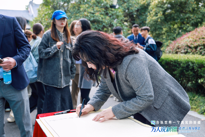 10月29日,由新疆维吾尔自治区党委网信办、江苏省委网信办联合主办的“万人说新疆”走进江苏分享会在南京师范大学随园校区举行。左宗棠五世外孙梁小进、南京大学历史学院教授张良仁、作家丁捷、江苏卫视主持人孟非、南京市博物总馆副馆长宋燕、澳大利亚籍主持人安龙等,以及一线援疆建设者、文化学者、自媒体博主等嘉宾,相会于秋日的“东方最美校园”,畅叙跨越古今东西的新疆故事。