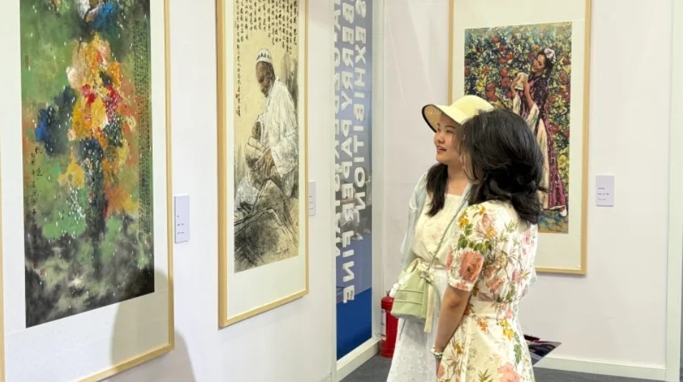 2025(中国)亚欧商品贸易博览会,中国与乌兹别克斯坦画家的桑皮纸画作联合展出。