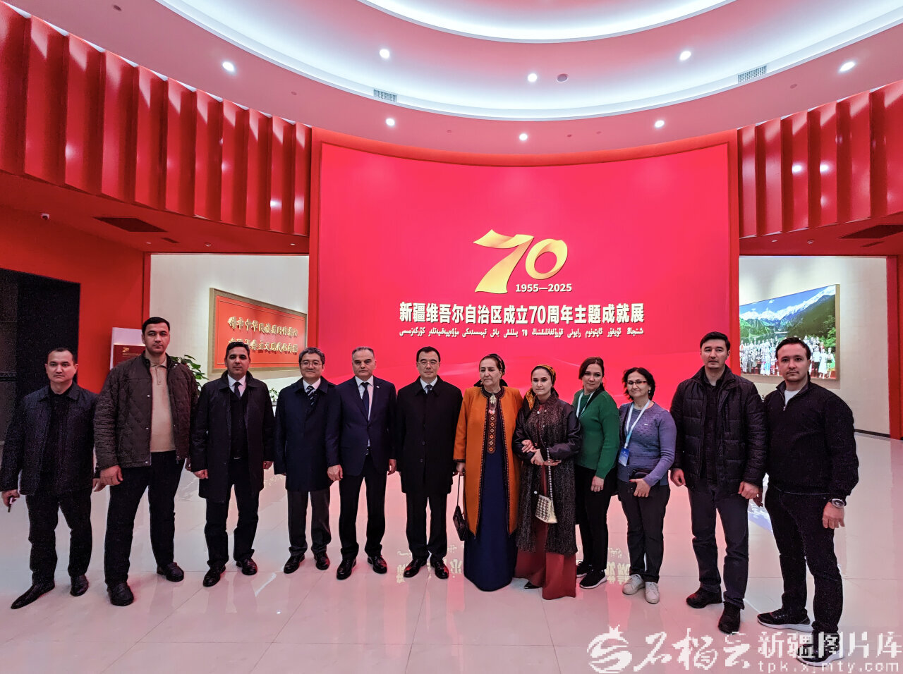 天山网-新疆日报讯(记者周鹏摄影报道)11月5日,参加第十二届中国—中亚合作论坛的多国代表团嘉宾走进新疆维吾尔自治区成立70周年主题成就展现场,通过丰富的实物展品、翔实的数据图表及生动的影像资料,沉浸式感受新疆70年来的沧桑巨变,为深化合作注入新共识。