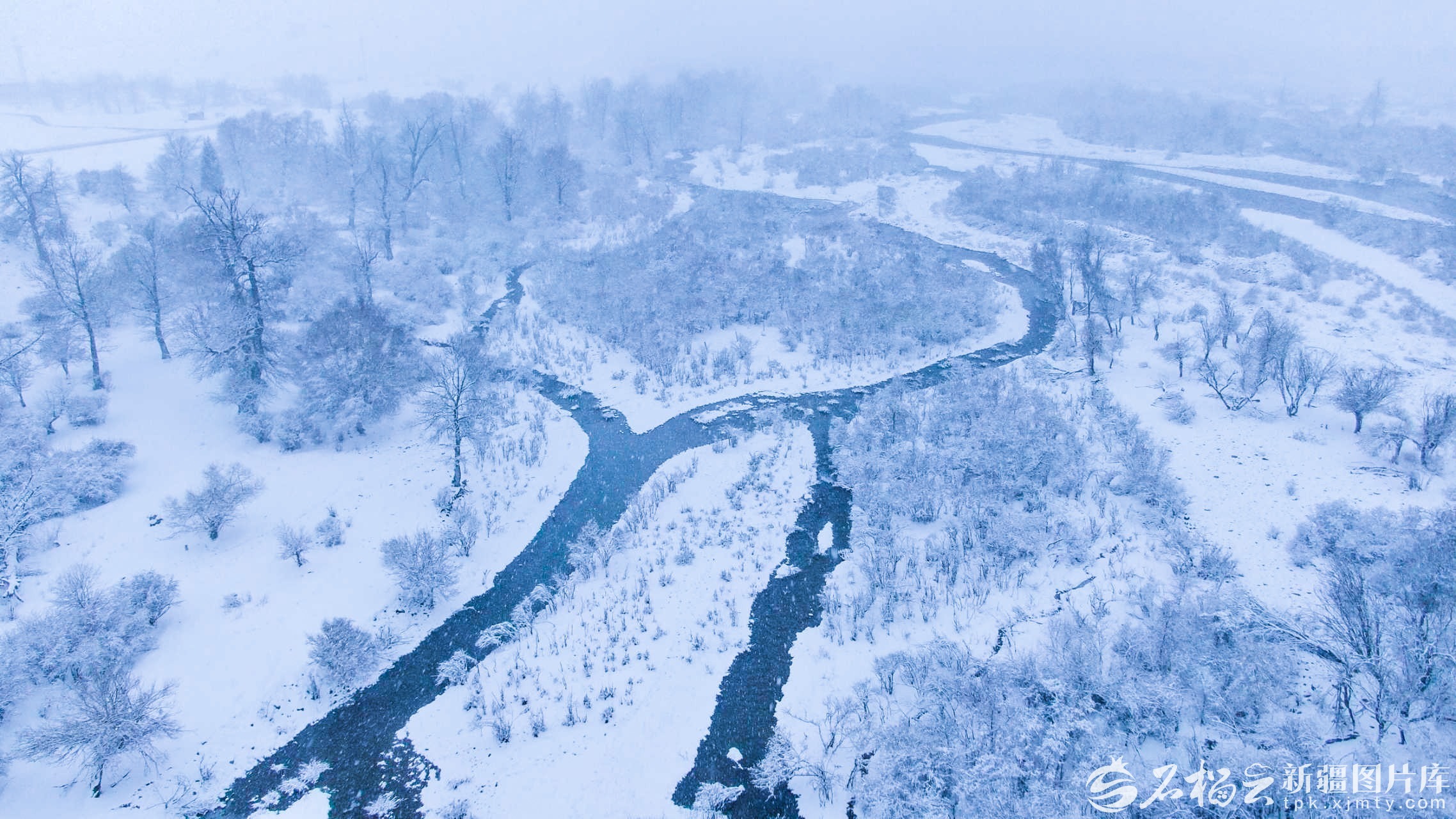 11月5日,那拉提景区迎来降雪,被雪花装点的草原、森林、河水宛若一幅清雅的丹青画卷。