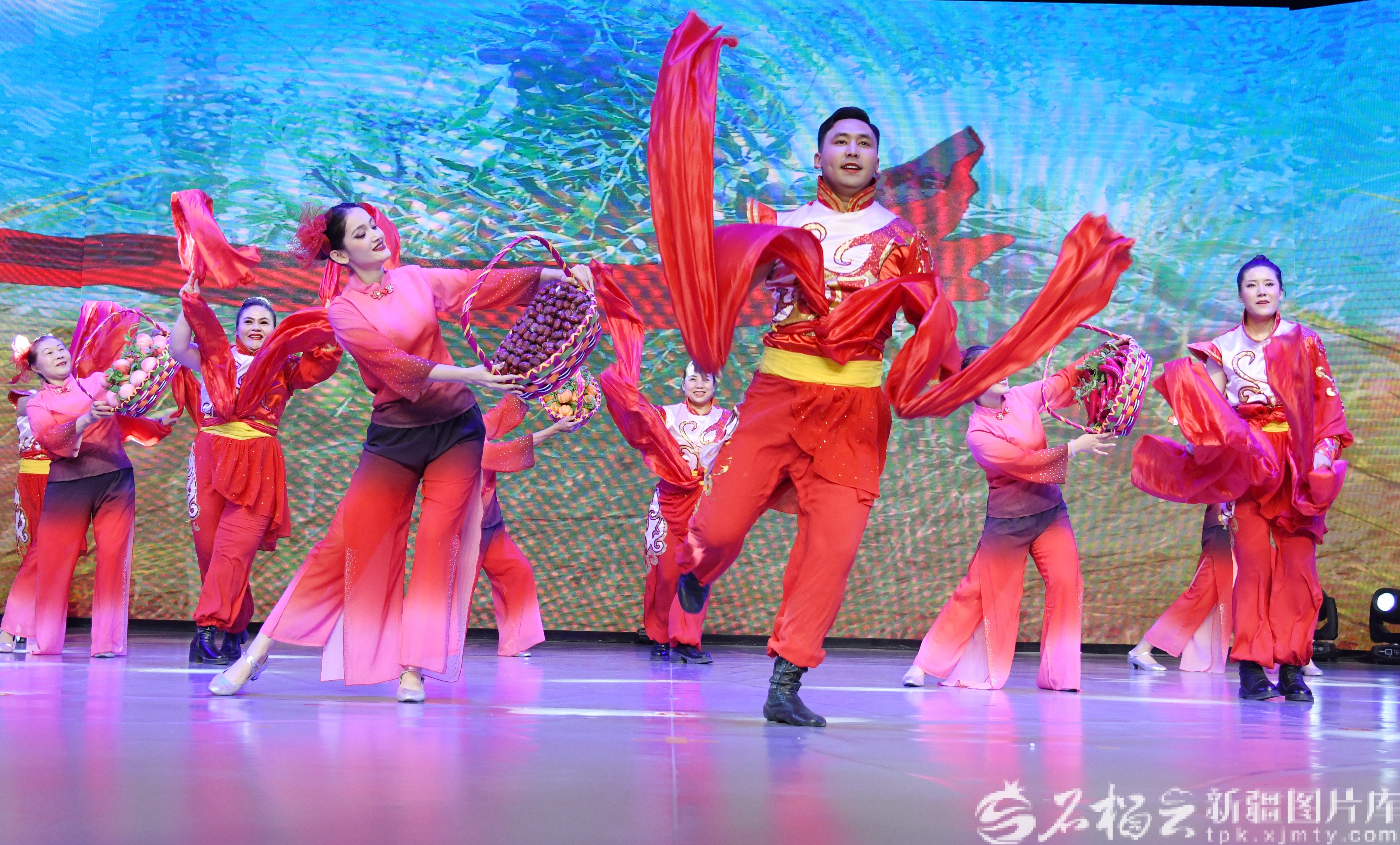 11月28日下午,若羌县文化社区代表队表演的舞蹈《红韵·丰收情》。