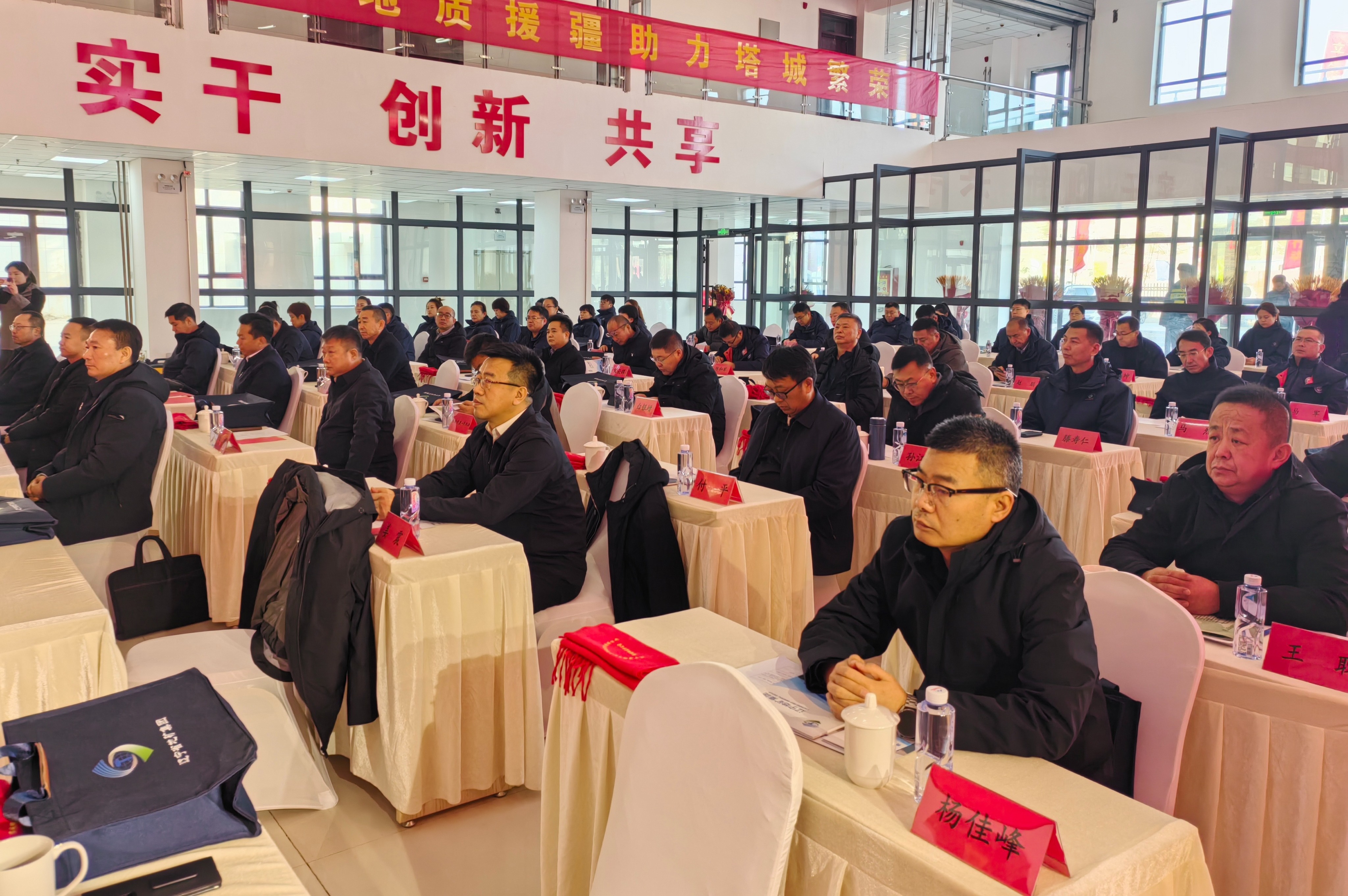 仪式现场,县委副书记、辽宁本溪市援疆干部领队孟祥楠与相关领导先后致辞,回顾辽塔两地在产业援疆、地质合作中的同心历程,展望检测中心助力资源转化的广阔前景。随后,辽宁省地质矿产投资开发集团副总经理黄略和县委常委、政府副县长朱宏斌共同为中心揭牌,标志着辽塔两地地质矿产领域战略合作正式迈入“实质性推进、高水平发展”新阶段,更成为辽宁省践行新时代党的治疆方略、深化对口援疆的又一重要成果。