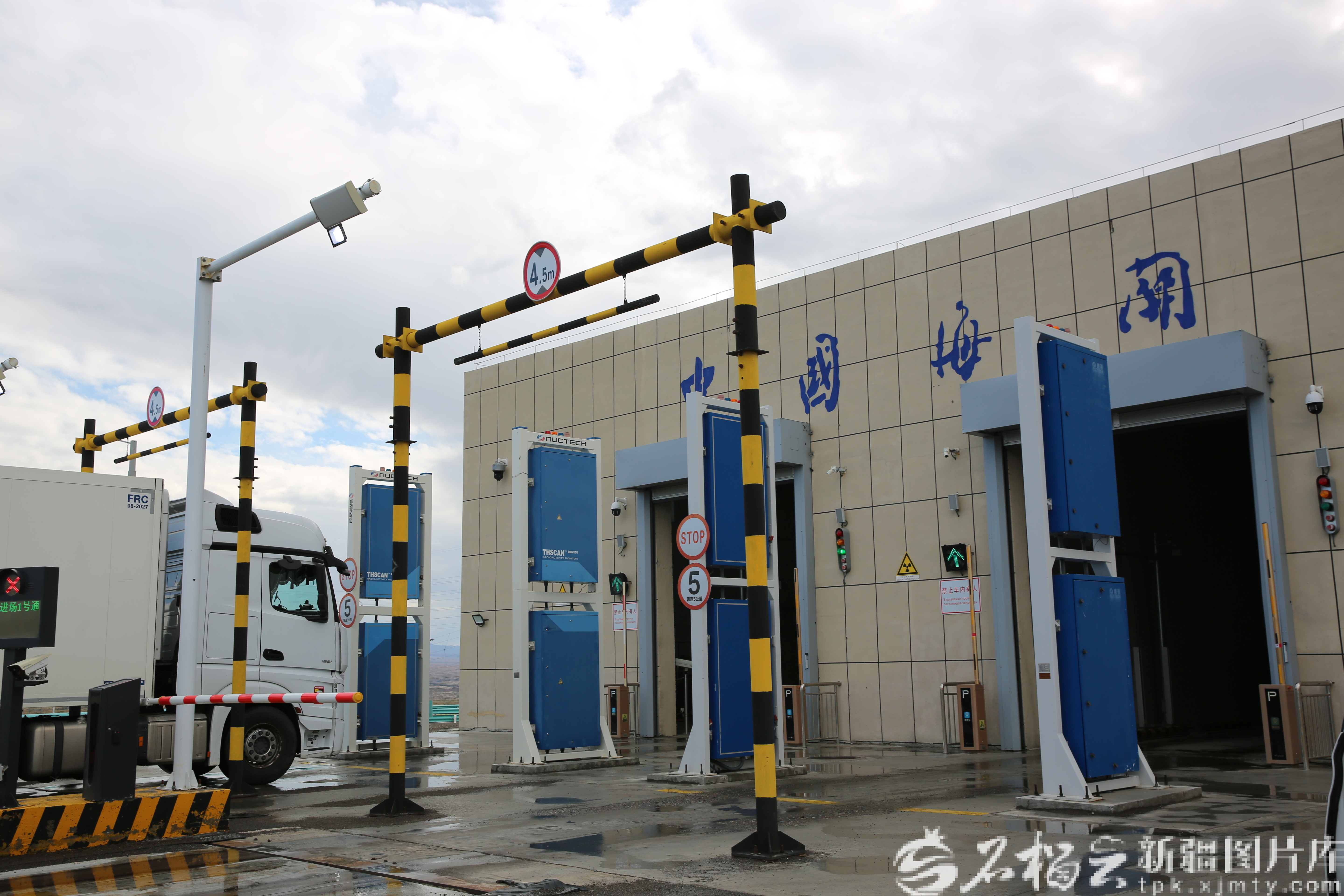 9月24日,一辆入境货车通过阿拉山口公路口岸入境卡口。潘嘉阳摄