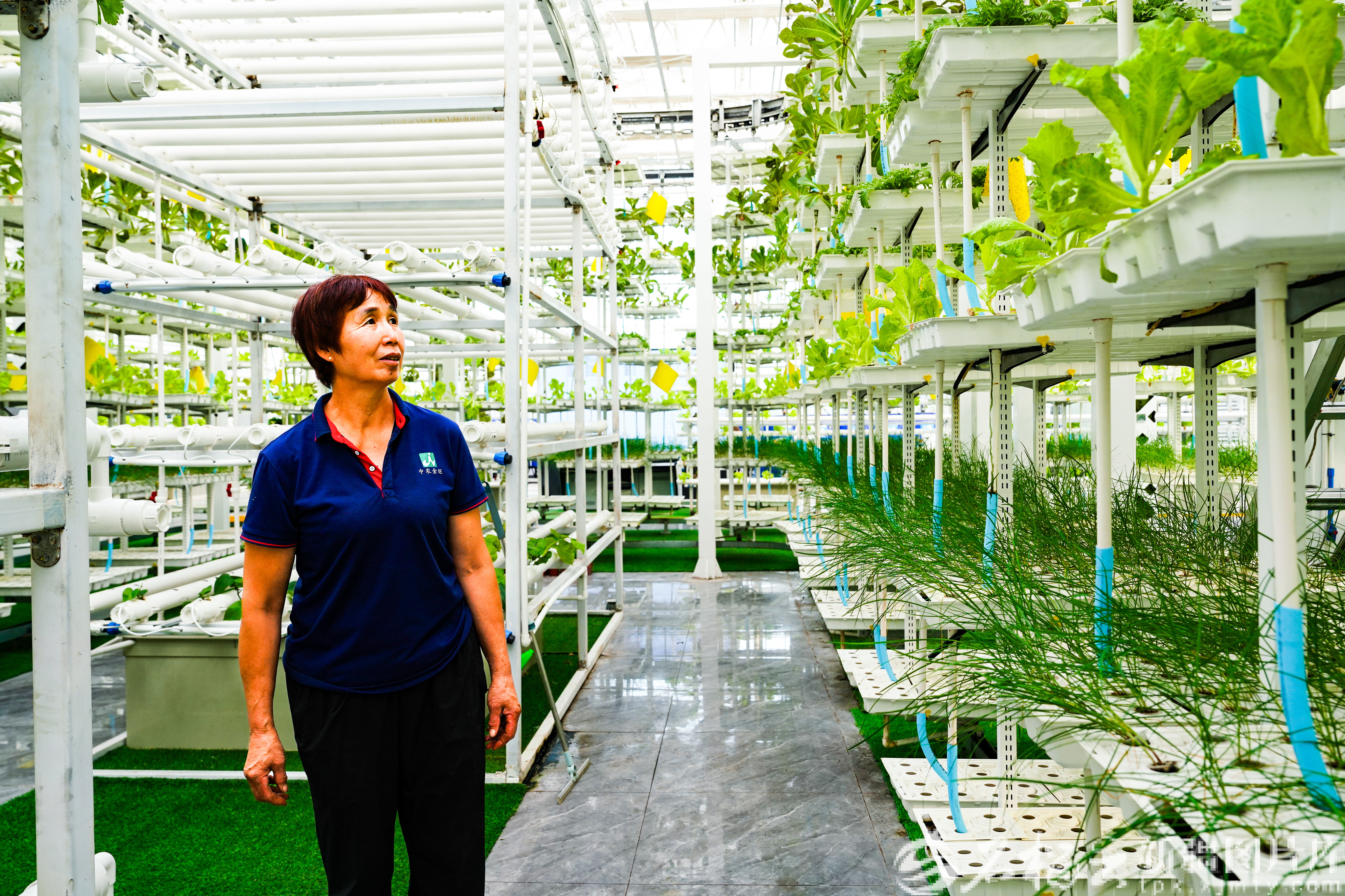 8月25日,工人在位于昌吉国家农业高新技术产业示范区的新疆农业博览园未来农业科技馆垂直农业展示区管理蔬菜。常谊谊摄
