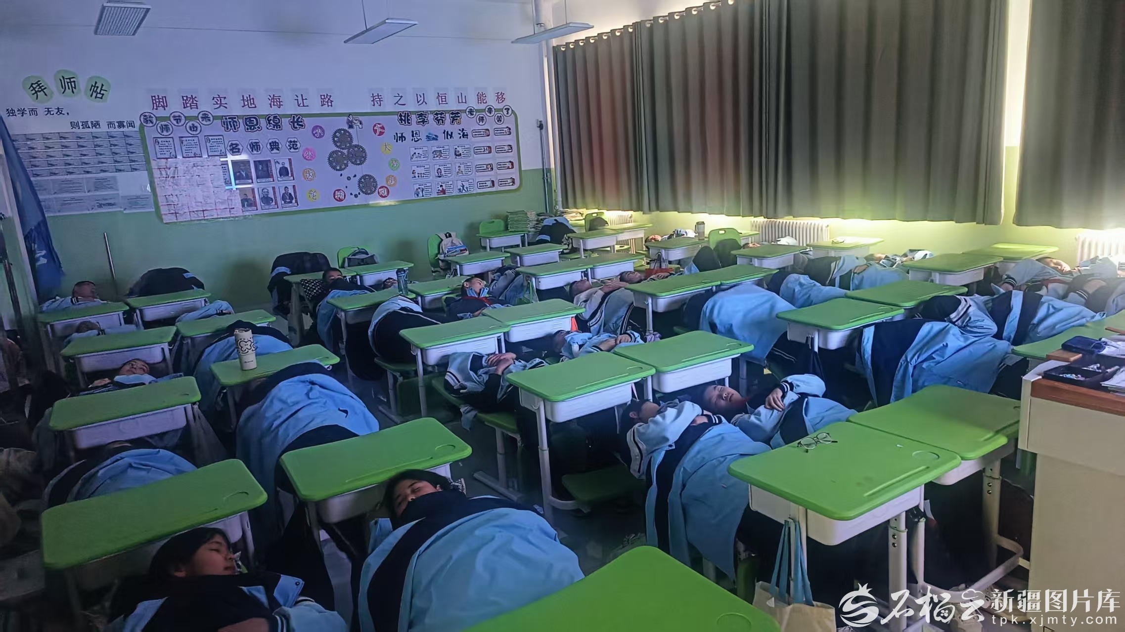12月16日,博乐市汉博中学学生“躺睡”午休。马云摄