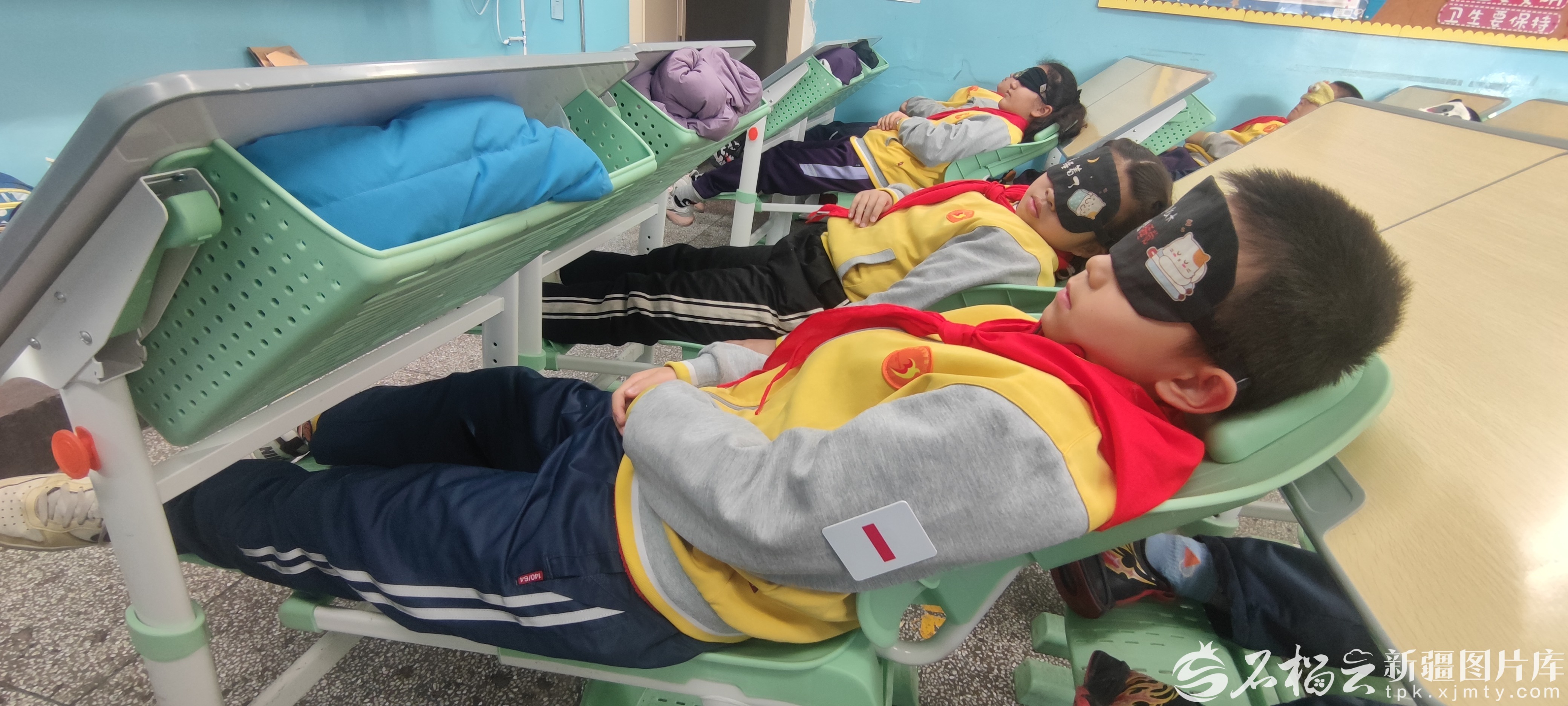 目前,新疆已有多所中小学校因地制宜,结合自身条件,通过配备新式可躺式课桌椅、改造闲置空间等方式,让孩子们实现从“趴睡”到“躺睡”的升级。