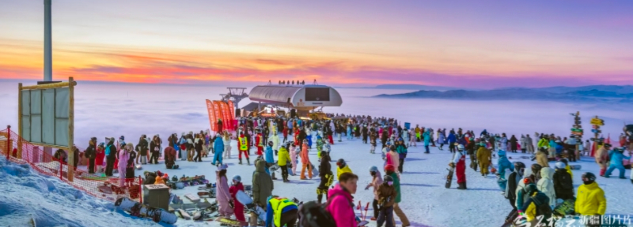 将军山国际滑雪度假区山顶举行的夕阳派对。图/将军山国际滑雪度假区提供