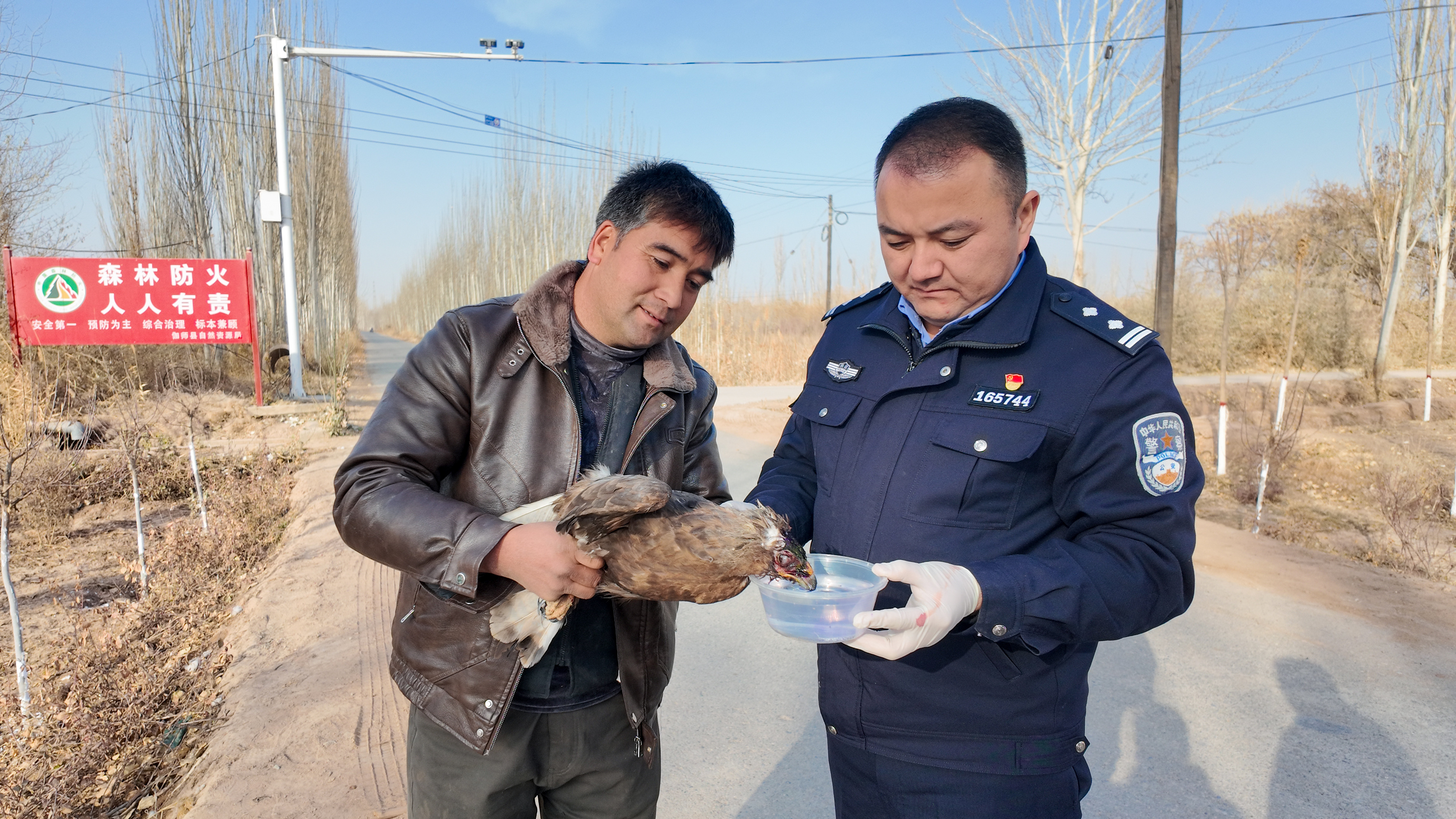 为保障这只“空中国宝”得到科学救治,民警按规定将其转运至伽师县野生动物救助站。救助站工作人员表示,将尽快为乌雕进行全面体检并制定治疗方案,待完全康复后,会将其放归自然。