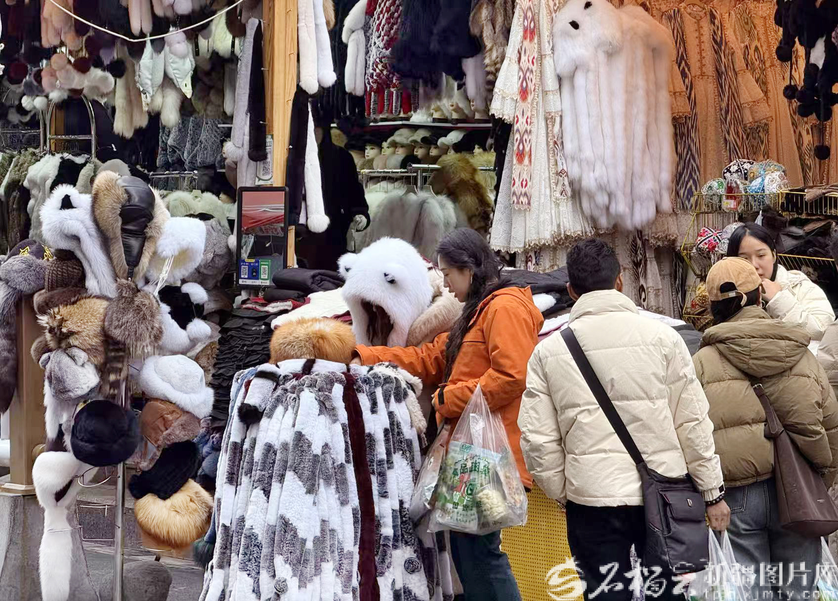 和田街的街巷间节日气氛浓厚,沿街商铺推出惠民折扣,不少游客选购冬季服装,在添置新衣的喜悦中迎接新年。