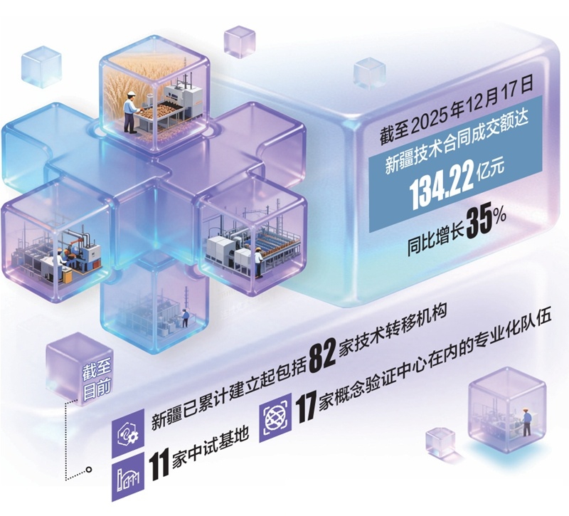 随着政策、平台、人才、资本等创新要素高效汇聚,一条贯穿实验室与生产线的快速通道在天山南北加速成型。一个全链条、可持续的成果转化生态日趋成熟,正成为驱动产业升级、孕育区域竞争新优势的核心引擎,为新疆高质量发展注入源源不断的创新活力。