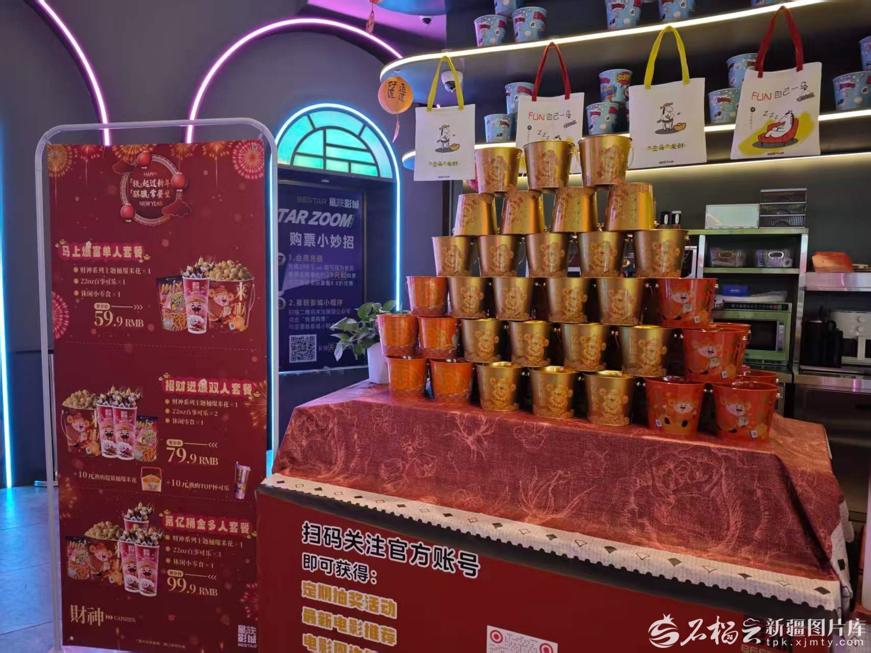 春节期间,乌鲁木齐会展吾悦广场星轶影城将爆米花桶更换为喜庆款,还推出马年帆布包。天山网-新疆日报记者 朱成晓摄