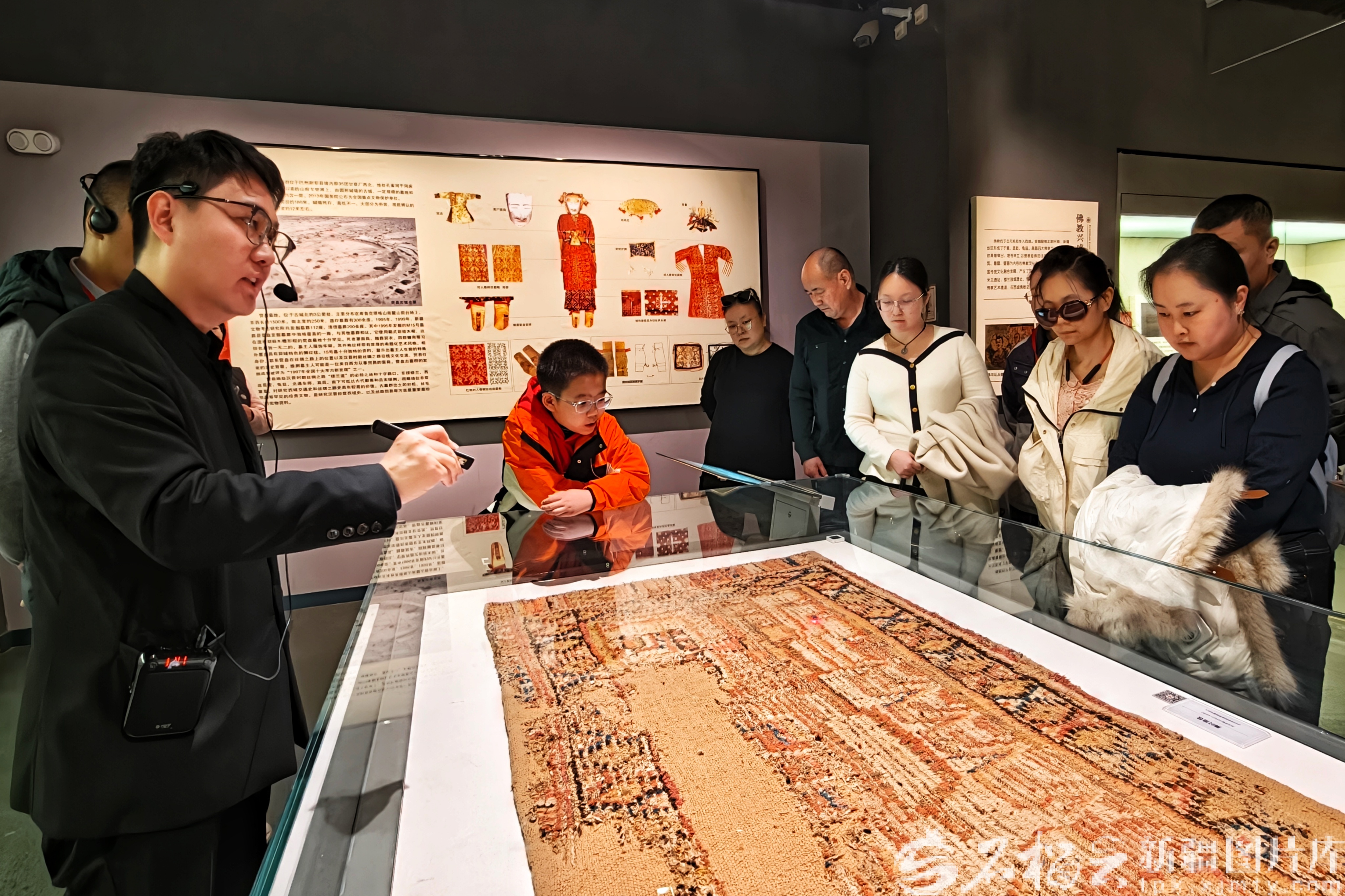 10时25分,十几名游客围拢过来,闫一乐按下讲解器开关,声音平稳清晰:“咱们先从巴州的历史脉络说起,这里是古丝绸之路的要道,也是多民族文化交融的地方。”他从先秦城邦文明到汉唐屯田戍边,再到近现代文化传承,每一段历史都与展柜文物对应,让冰冷的器物有了时空坐标。
