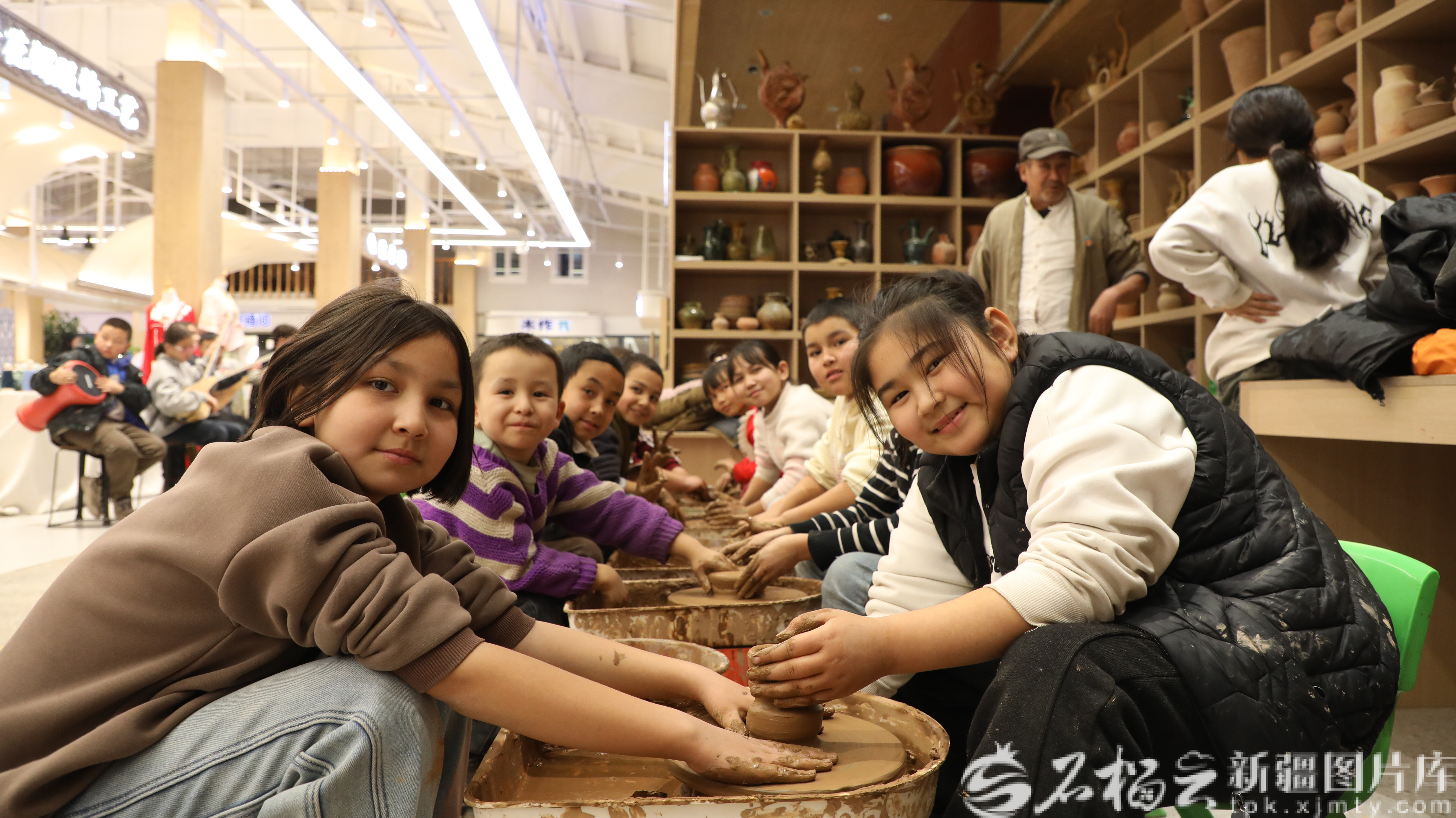 近日,在库车市龟兹非遗工坊内,孩子们正在体验库车土陶制作。黄锦兰摄