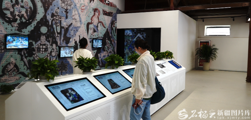 近日,在库车国家历史文化名城龟兹乐舞数字体验中心,游客通过多点触控等体验模式,了解龟兹文化。郭子乐摄