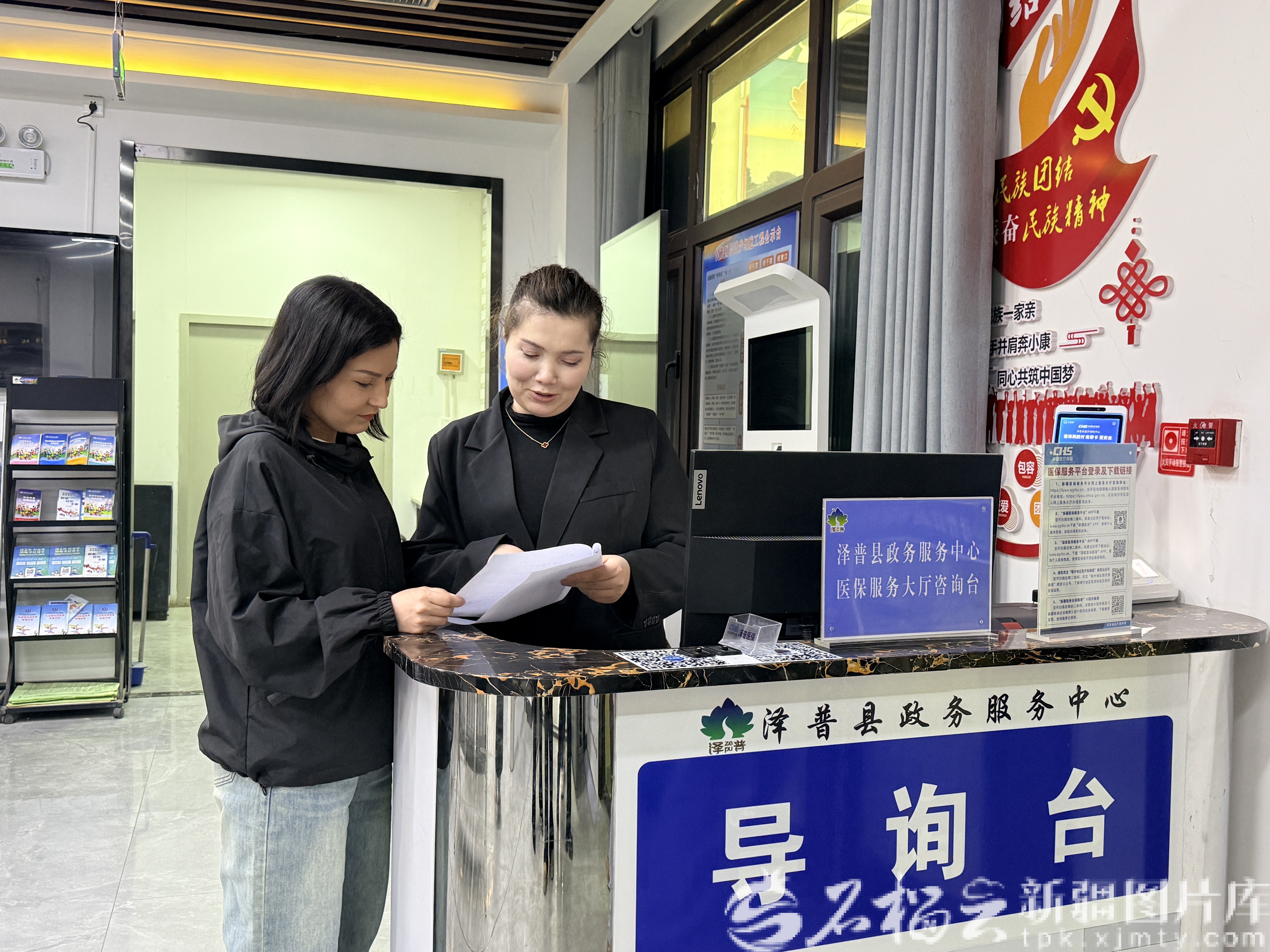 2月26日,在泽普县行政服务大厅,导询台工作人员为群众高效、精准引导办理各项业务,用“新年伊始的马不停蹄,换取群众办事的“马上满意”。黄代辉摄