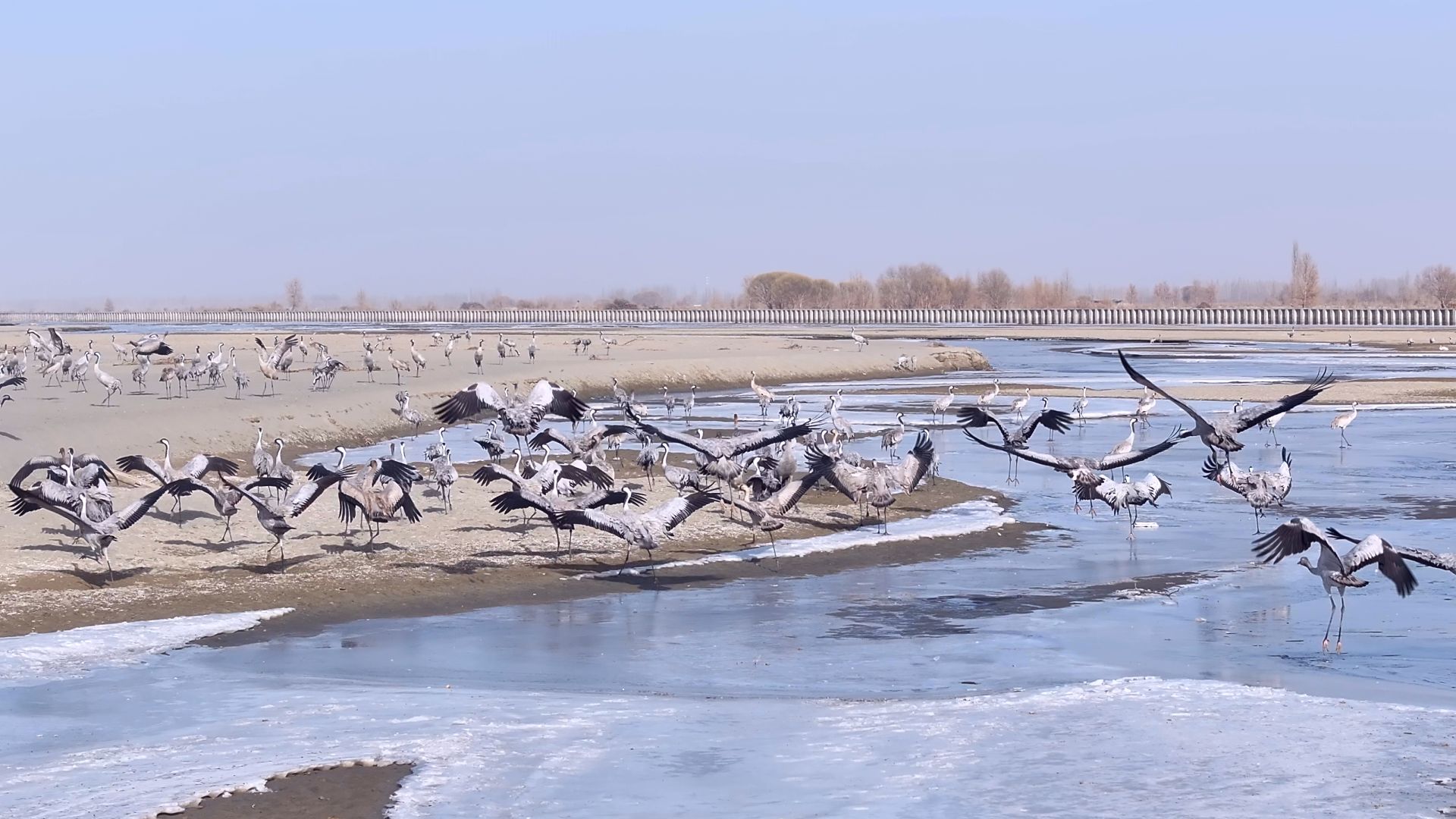 近年来,墨玉县持续推进湿地修复、防护林建设、水系整治等生态工程,为候鸟迁徙、越冬筑牢了“安全屏障”,灰鹤数量从最开始的零星几只增加到如今的千余只。