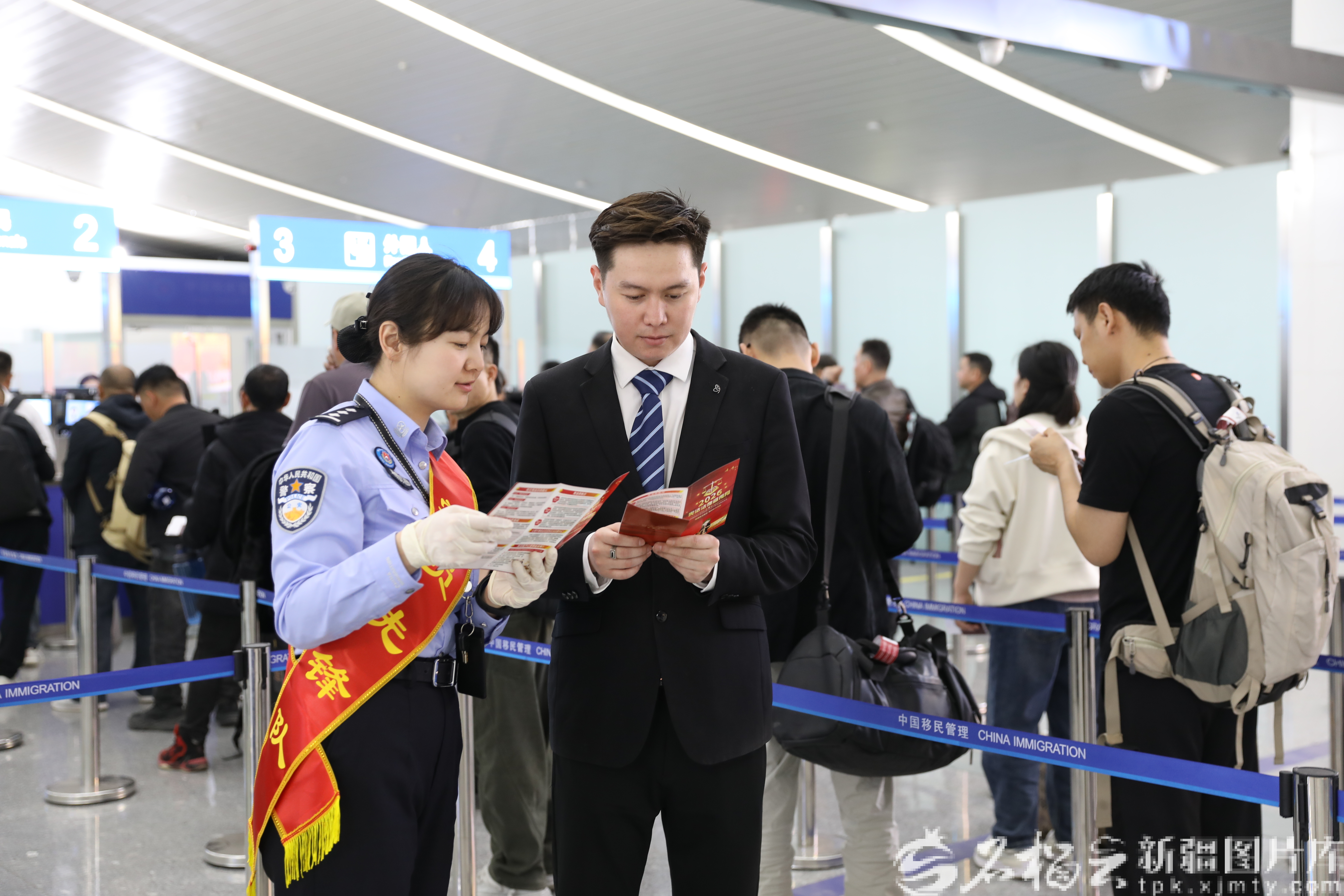 “来新疆旅游、经商的外籍人士越来越多,其中以中亚国家旅客最为集中。”4月10日,在乌鲁木齐天山国际机场口岸入境大厅,办理入境手续的旅客排成几列长队,乌鲁木齐边检站执勤一队政治教导员余鑫介绍,为高效应对客流高峰,乌鲁木齐边检站增开查验通道,持续深化智慧边检建设,多措并举压缩旅客通关等候时间,提升通关体验。