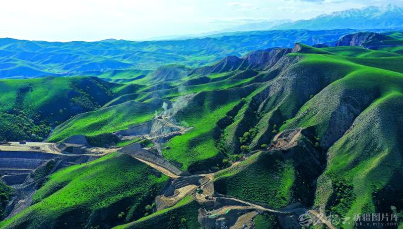 4月的新疆西部,空气清冷、草色泛青,从温泉县到霍尔果斯市,千岭万壑间,正在建设中的G219线温泉至霍尔果斯公路如巨龙般蜿蜒行进。