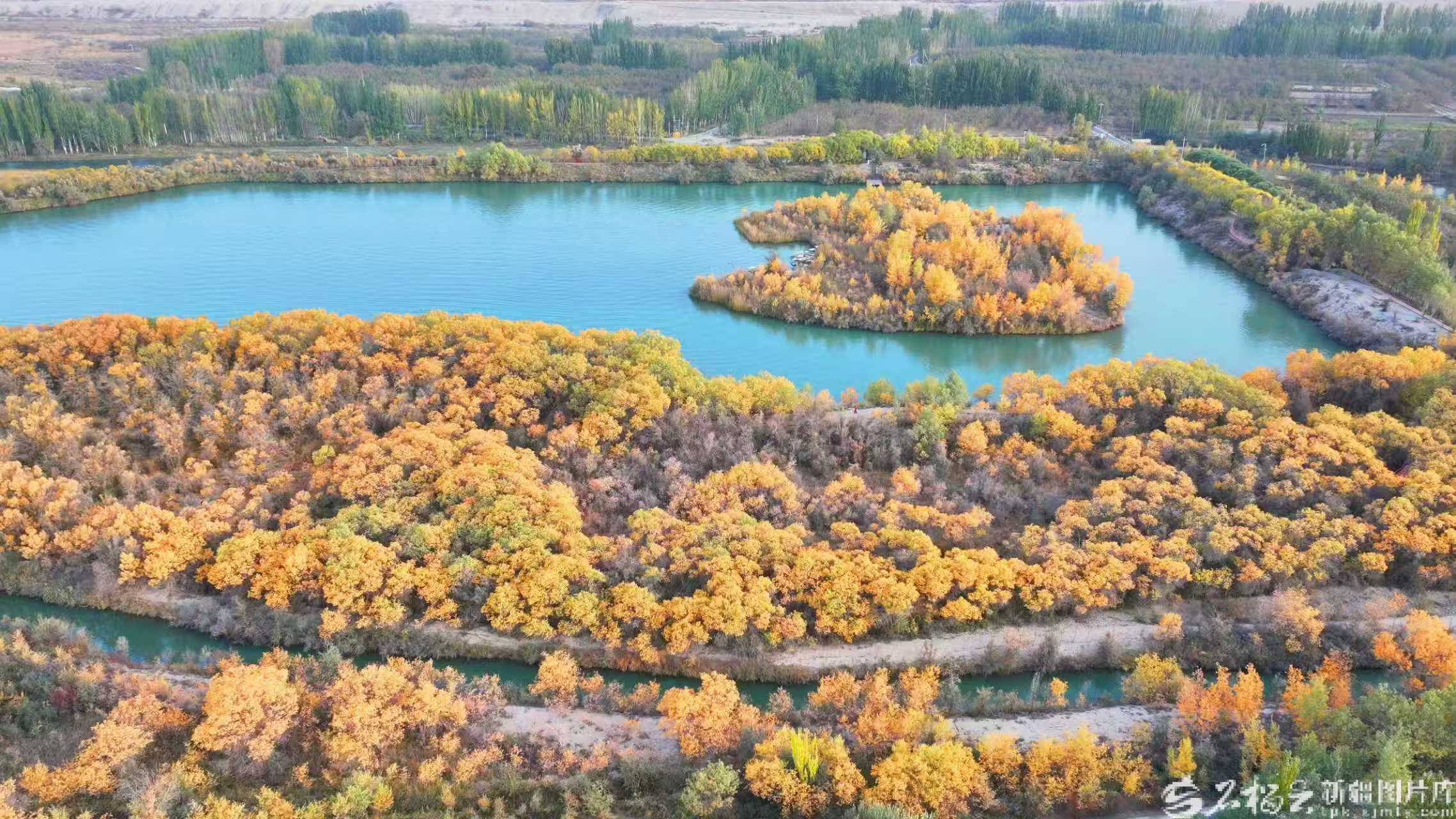 2025-10-20 10:11新疆喀拉托海湖:一湖蓝绿映长天 满岸金黄醉秋光