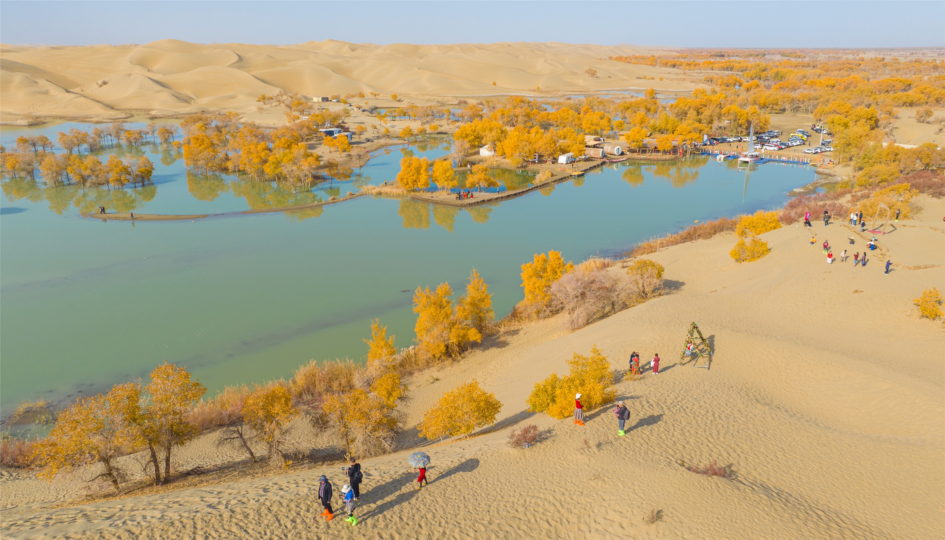 位于图木舒克市的永安湖是西北地区最大平原水库小海子水库的组成部分,也是候鸟迁徙重要驿站。每到这个季节,这里沙丘与碧水相依,金黄胡杨在沙海间肆意铺展,湿地如翡翠镶嵌大地,斑斓的色彩碰撞出独特的大漠生态画卷。王举南摄