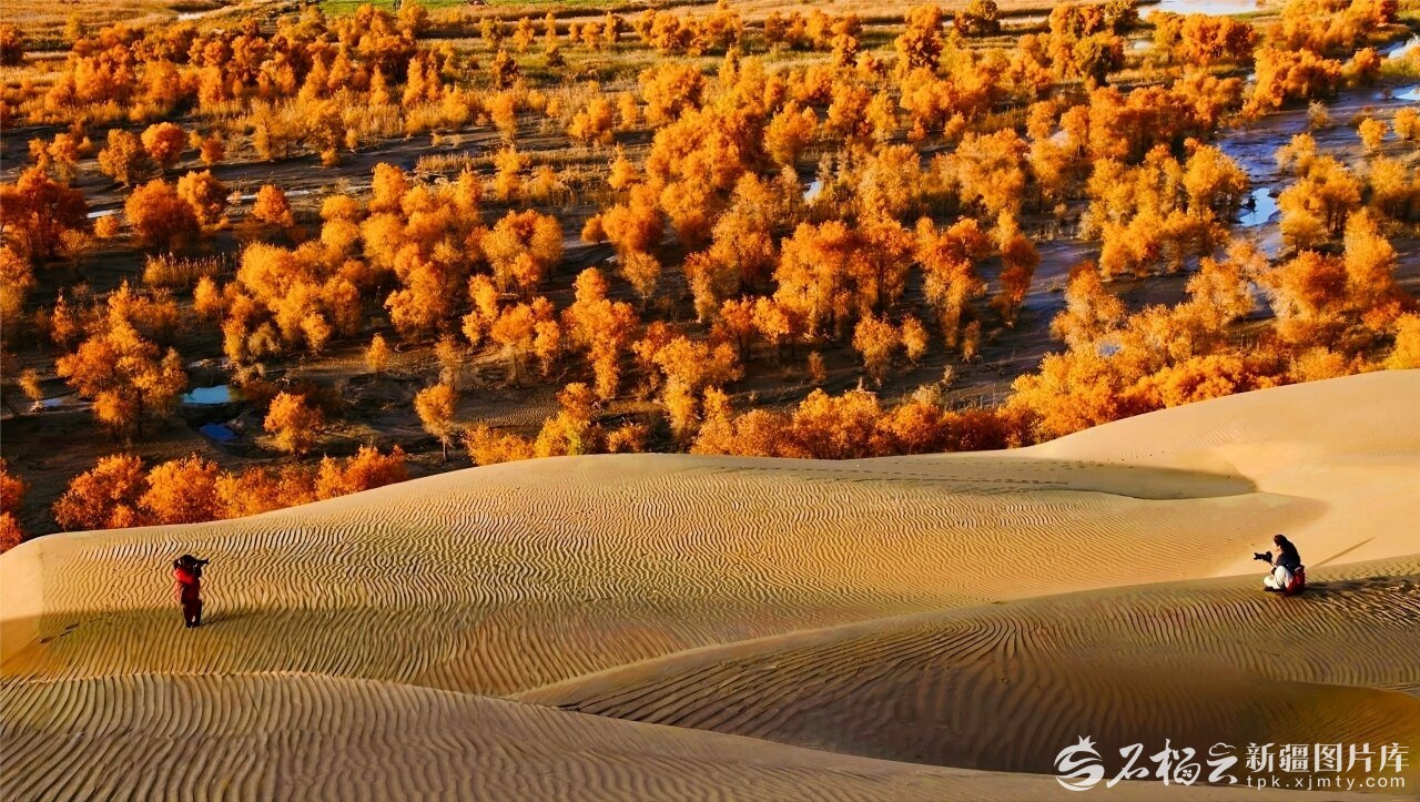 11月10日,游客在新疆生产建设兵团第二师33团乌鲁克国家沙漠公园游览,拍摄大漠胡杨美景。栗卫平摄