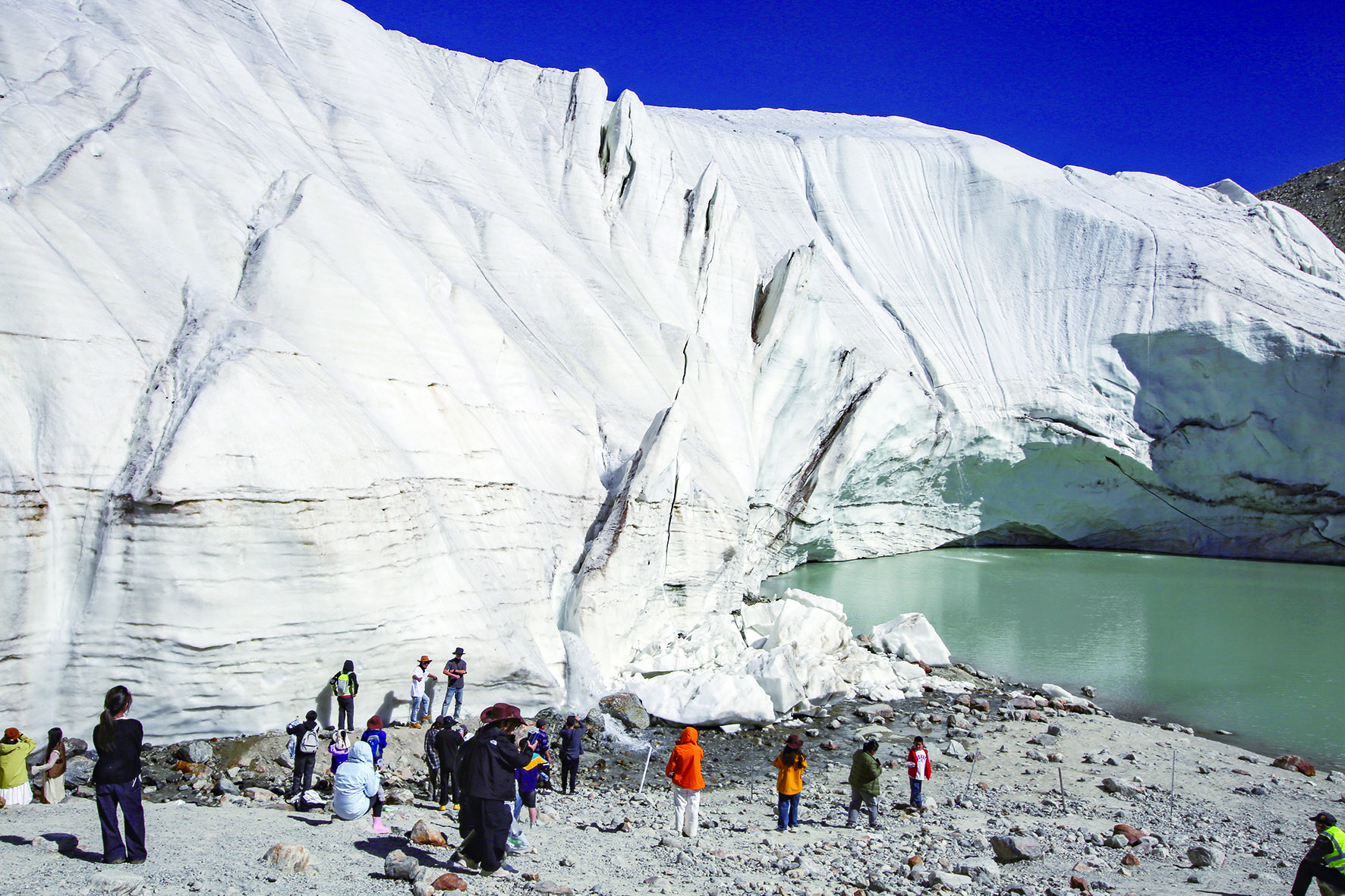游客在慕士塔格冰川公园近距离感受冰川魅力。蔡增乐/摄