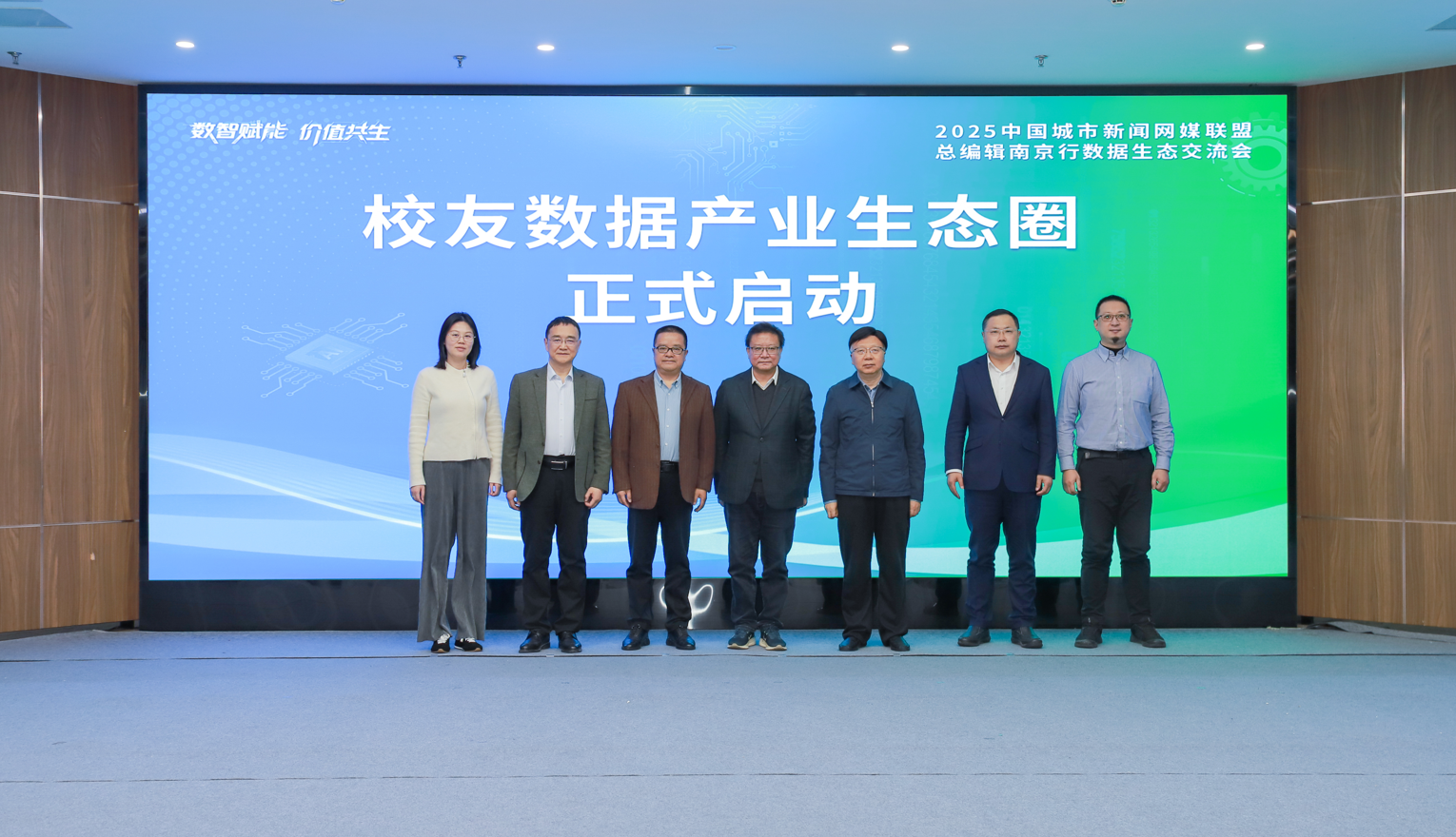 下午的数据生态交流会上,一系列合作项目相继启动,“校友数据产业生态圈”正式启动,清华大学南京校友会、南京大学南京校友会、东南大学南京校友会与江苏银行携手,为数据产业发展注入新动能。胡宝祥会长在随后的主题分享中,进一步描绘了“AI应用协作”为城市网媒带来的“新动能、新希望、新天地”。