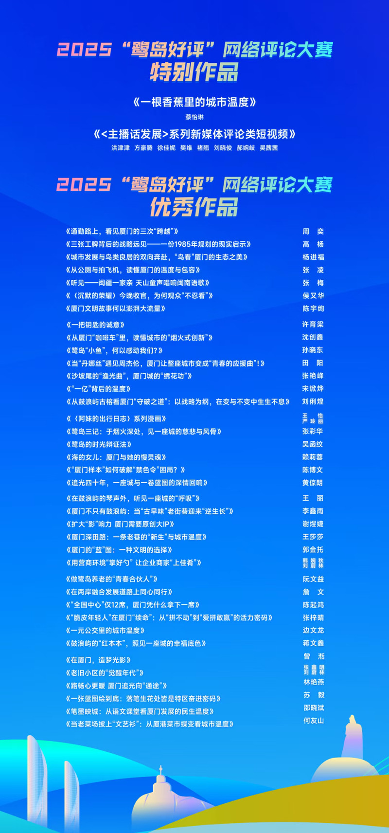 【链接】2025“鹭岛好评”网络评论大赛获奖名单