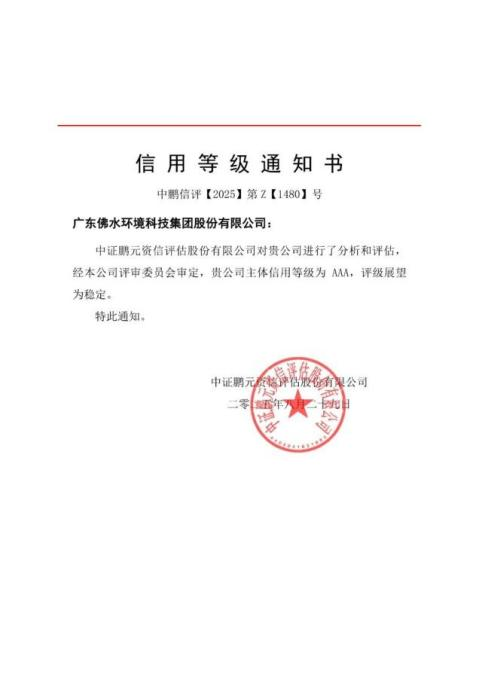 ◆8月,佛水环境、佛山水业集团获评AAA主体信用评级,跻身国内企业信用等级“第一梯队”。