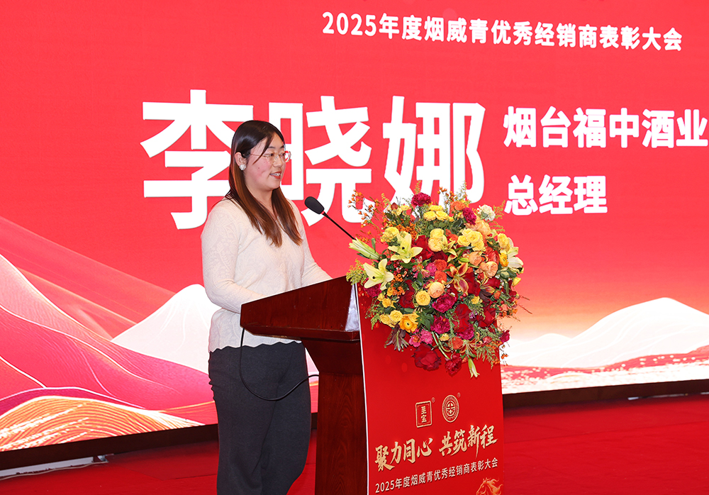 烟威青地区地缘相近、人文相通、市场相连,是广大经销商共同深耕的核心区域,更是未来拓展的广阔蓝海。优秀经销商代表、烟台福中酒业有限公司总经理李晓娜上台分享了市场拓展经验与未来发展方向。她表示,“过去一年,在行业调整的大环境下,我们与公司同心同德,携手并进,共同取得了稳步成长。这份成绩离不开公司的战略引导,也离不开彼此的信任与努力。公司研发与生产团队对品质的执着,让至宝三鞭酒等产品成为我们赢得消费者信赖的坚实后盾。我们对未来充满信心,这份信心来自公司深厚的品牌基淀、强大的产品矩阵,也来自我们对携手共赢的坚定信念。接下来,我们将紧跟公司战略,优化渠道布局,与公司同频共振,共创佳绩。”