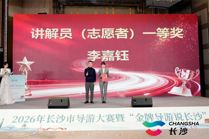 大赛共角逐出专业组金奖2名、银奖8名、铜奖9名,以及优秀奖、最佳风采奖、潜力新星奖、最佳组织单位奖、优秀指导老师奖等多个奖项,全面肯定选手、指导教师及组织单位在大赛中的突出贡献。下一步,市文旅广电局将择优推荐,迅速集结优秀选手代表参加2026年湖南省导游大赛,进一步展示长沙导游队伍的专业风采。