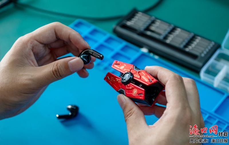 4月7日,在海口综合保税区司龙氏(海南)科技有限公司维修车间内,工程师雷波戴着防静电手环,仔细拆解一副来自境外的无线蓝牙耳机。这副耳机看起来很新,但右耳无法充电,在海口综保区进行“手术”后将复运出境。