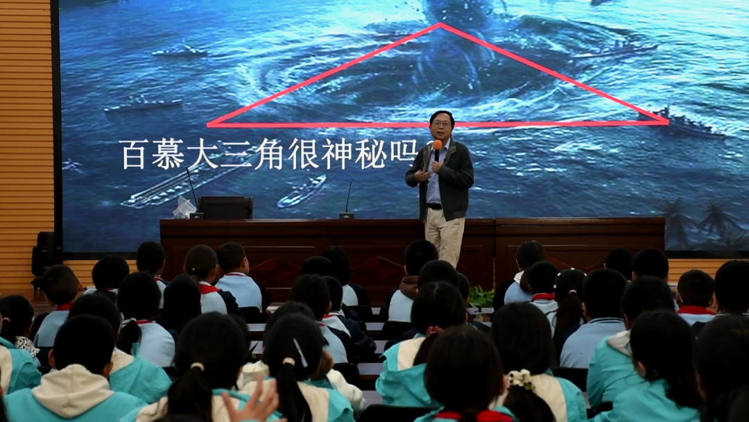 观影结束后,精彩的科普讲座随即展开。在现场,汪诘老师凭借专业知识与丰富经验,以通俗易懂、风趣幽默的方式,为孩子们讲解如何分辨真假世界未解之谜,以及什么是真科学,什么是伪科学。现场气氛热烈,孩子们踊跃举手提问,老师耐心细致地解答每一个问题,还为积极提问的孩子送上精心准备的小礼品,鼓励大家保持对科学的热情。