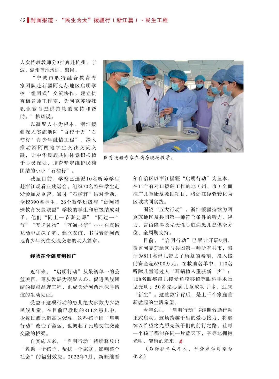 自实施以来,“启明行动”持续释放出“救助一个孩子、帮扶一个家庭、影响整个社会”的辐射效应。2022年7月,新疆维吾尔自治区以浙江援疆“启明行动”为蓝本,在11个有对口援疆工作的地(州、市)全面推广儿童康复救助项目,将浙江经验转化为区域共同实践。