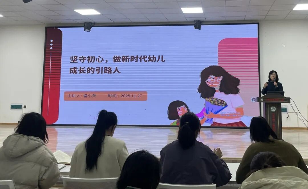 在幸福幼儿园,盛小英与团队积极践行“幸福教育”理念,致力于打造一座充满爱与关怀的成长乐园。她将师德建设放在首位,开展了《为师以德,做“四有”好老师》《坚守初心,做新时代幼儿成长的引路人》等系列培训,结合法规解读与案例剖析,引导教师将师德规范融入日常言行,筑牢育人初心。